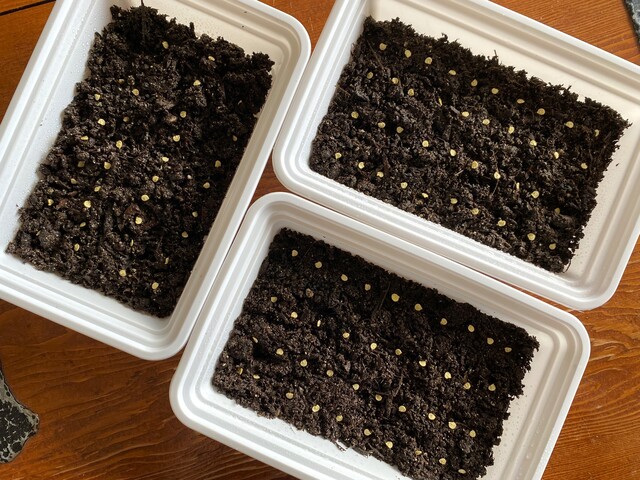 入れ物が3つしかない。。ケース一つに種を40個配置して、全部で120個準備した。