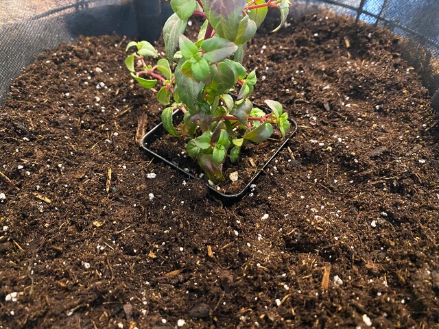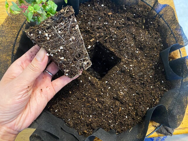 そこに、ポットから取り出した苗を埋め込む。