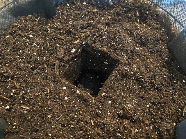 そして苗ポットを取り出す。ポットと同じ形で空間が出来る。