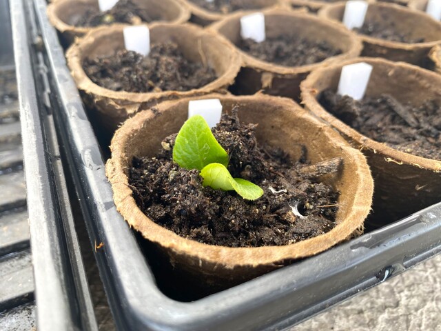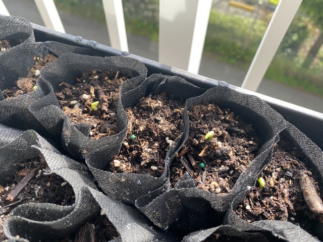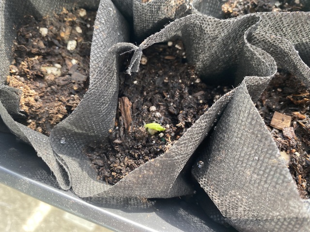 コチラは、同じ日に種を蒔いたスナップエンドウです。ゆっくりではありますが少しづつ発芽してきました。