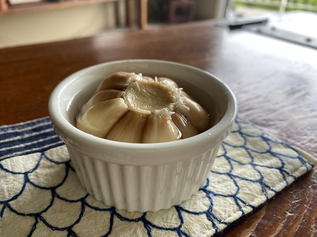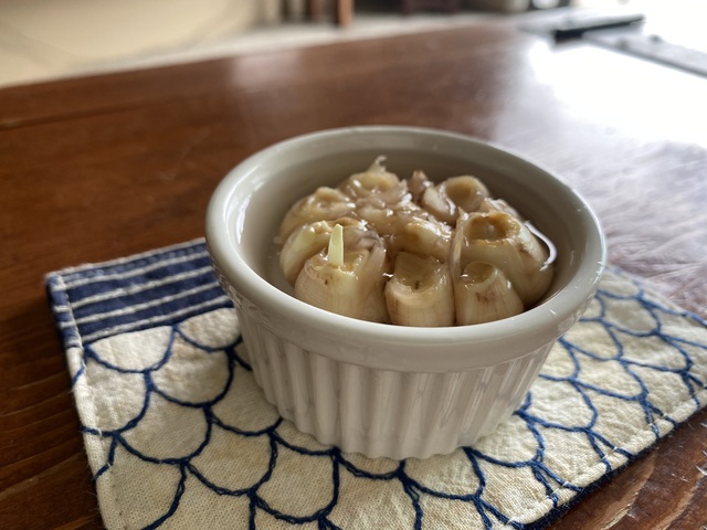 水に浸していたガーリックが地味に大きくなってきているようです。使っていた器が窮屈になってきたので器を変更しました。そして、やっと芽が生えてきました。根はこんな感じです。