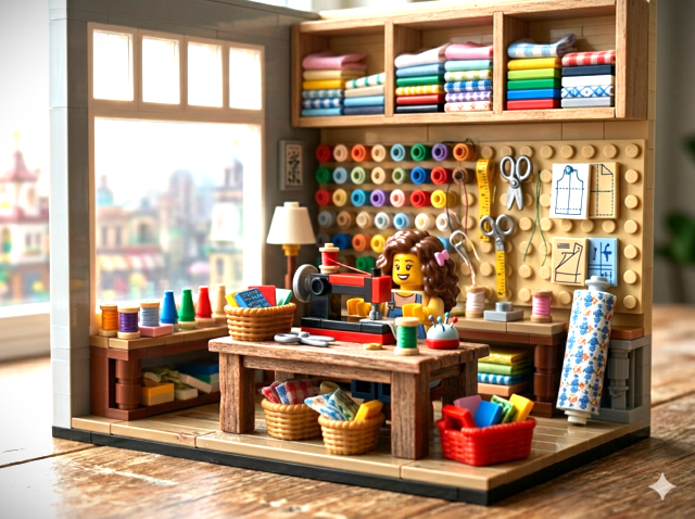 GO-SEWING-GO! 雑記 2026.04.11 春風の候、 巷のある界隈でレゴブロックを使ったAI生成動画が賑わっています。 私も作ってみました。 夢の洋裁部屋。 かわいい、この一言に尽きます。