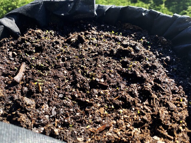 ハンギングバスケットには大体2日に一回くらいお水をあげています。先日やっと発芽を確認しました。パンジーかアリッサムのどちらかだと思います。どちらの種もパラパラと全体に適当に撒いたのでランダムに生えてくると思います。とりあえず発芽までこぎつけれたので一安心です。